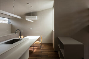 中庭を眺められるリビングとタイル張りの浴室は特にお気に入りの場所となっています。また、デザイン性だけでなく実際の生活のしやすさも気に入っているところです。生活動線も併せて考えていただいたことが大きかったと思います。デザイン性の高い住宅だと住みづらいのではないかと考える方もいらっしゃると思いますが、デザイン性と実際の生活を両立させているところに諸江さんの設計の妙を感じています。